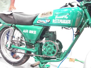 ಅರಮನೆ ಮೈದಾನದಲ್ಲಿ ನಡೆದ ವಾಹನ ಪ್ರದರ್ಶನದಲ್ಲಿ ಈ ಏರ್ ಬೈಕ್ ಹೆಚ್ಚಿನವರ ಗಮನ ಸೆಳೆದಿದೆ. ಈ ಬೈಕ್ ಕಂಪ್ರೆಸ್ಡ್ ಅಥವಾ ಸಂಕುಚಿತ ಗಾಳಿಯಿಂದ ಕಾರ್ಯನಿರ್ವಹಿಸುತ್ತದೆ. 12 ವೋಲ್ಟೆಜ್ ಬ್ಯಾಟರಿ ಶಕ್ತಿಯ ಏರ್ ಕಂಪ್ರೆಸರನ್ನು ಬೈಕಿನ ಬಾಡಿಗೆ ಅಳವಡಿಸಲಾಗಿದೆ. ಈ ಸಾಧನ ಸಂಕುಚಿತ ಗಾಳಿಯನ್ನು ಎಂಜಿನ್ ಗೆ ರವಾನಿಸುತ್ತದೆ. ಎಂಜಿನ್ ಇದನ್ನು ಇಂಧನವಾಗಿ ಬಳಸಿಕೊಳ್ಳುತ್ತದೆ.