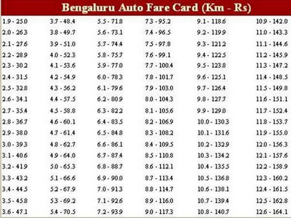 - ಕನಿಷ್ಠ ದರ: 25 ರು. ಮೊದಲ 1.9 ಕೀ.ಮೀ.