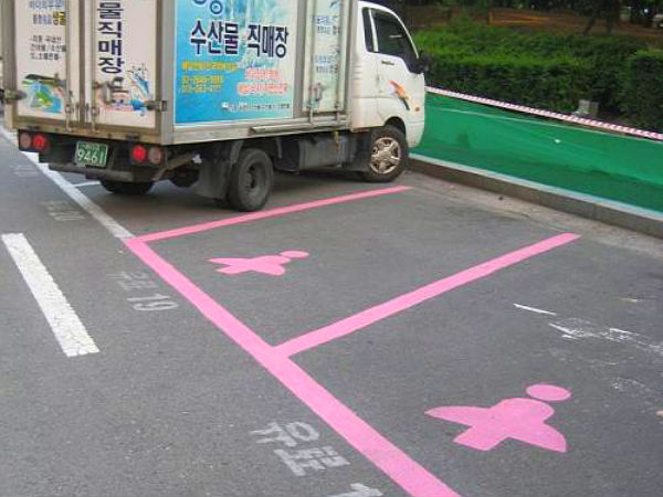 ಕೊರಿಯನ್ ಟೈಮ್ಸ್ ಪ್ರಕಾರ ಮಹಿಳೆಯರಿಗೆ ಮೀಸಲಾಗಿರುವ ಪಾರ್ಕಿಂಗ್ ತಾಣಗಳು ಪಿಂಕ್ ಬಣ್ಣದಿಂದ ವಿಶೇಷವಾಗಿ ಗೋಚರಿಸಲಿದ್ದು, ಅದರೊಳಗೆ ಮಹಿಳಾ ಲಾಂಛನವಿರಲಿದೆ. ಅಲ್ಲದೆ ಸಾರ್ವತ್ರಿಕವಾಗಿ ಮಹಿಳೆಯರನ್ನು ಗುರುತಿಸುವ ಗುಲಾಬಿ ಹೂ ಹಾಗೂ ಗುಲಾಬಿ ಬಣ್ಣ ಸ್ಕರ್ಟ್ ಇತ್ಯಾದಿ ಚಿಹ್ನೆಗಳು ಒಳಗೊಂಡಿರಲಿದೆ.