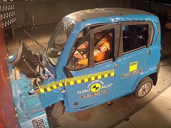 ಬಜಾಜ್ ನೂತನ ಕ್ವಾಡ್ರಾಸೈಕಲ್ ವಾಹನವು ಯುರೋ ಎನ್ಸಿಎಪಿ ಢಿಕ್ಕಿ ಪರೀಕ್ಷೆಯಲ್ಲಿ ಗರಿಷ್ಠ ಐದರಲ್ಲಿ ಒಂದು ಸ್ಟಾರ್ ರೇಟಿಂಗ್ ಗಿಟ್ಟಿಸಿಕೊಂಡಿರುವುದು ಎಲ್ಲರಲ್ಲೂ ಅಚ್ಚರಿ ಮೂಡಿಸಿದೆ.