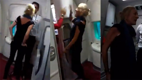 ಸಹ ಪ್ರಯಾಣಿಕರು ಈಕೆಯ ವರ್ತನೆಯನ್ನು ನೋಡಿ ನಗಲು ಆರಂಭಿಸಿದರು ಆದರೂ ಸಹ ಆಕೆ ಅಂಜದೆಯೆ ಸಿಬ್ಬಂದಿಗಳನ್ನು ಜಗಳಕ್ಕೆ ಕರೆದು, ಇನ್ನು ಹೆಚ್ಚಿನ ಮದ್ಯವನ್ನು ನೀಡುವುದಾಗಿ ಒತ್ತಾಯಿಸಿದಳು. ಈ ಗಲಾಟೆಯನ್ನು ಕಂಡು ವಿಮಾನದಲ್ಲಿದ್ದ ಕಮಾಂಡರ್ ಆಕೆಯನ್ನು ಸುಧಾರಿಸಲು ಮುಂದಾದರು.