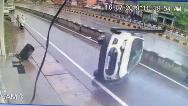 ನಿಯಂತ್ರಣ ತಪ್ಪಿ ಹೆದ್ದಾರಿಯಲ್ಲಿ ಪಲ್ಟಿ ಹೊಡೆದ ಫೋರ್ಡ್ ಇಕೋಸ್ಪೋರ್ಟ್ - ಚಾಲಕ ಸೇಫ್