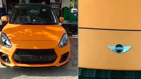 ಮಿನಿ ಕೂಪರ್ ವಿನ್ಯಾಸ ತಾಳಿರುವ ಈ ಕಾರು ಬೇರಾವುದೊ ಅಲ್ಲ. ಇದು ಮಾರುತಿ ಸುಜುಕಿ ಸಂಸ್ಥೆಯ ಜನಪ್ರಿಯ ಸ್ವಿಫ್ಟ್ ಹ್ಯಾಚ್ಬ್ಯಾಕ್ ಕಾರು..! ಸ್ವಿಫ್ಟ್ ಕಾರಿನ ಬಣ್ಣವನ್ನು ಸಂಪೂರ್ಣವಾಗಿ ಬದಲಾಯಿಸಿದ್ದು, ಕಾರಿನ ಹಲವಾರು ಕಡೆಯಲ್ಲಿ ಮಿನಿ ಸಂಸ್ಥೆಯ ಚಿಹ್ನೆಯನ್ನು ನೀಡಲಾಗಿದೆ.