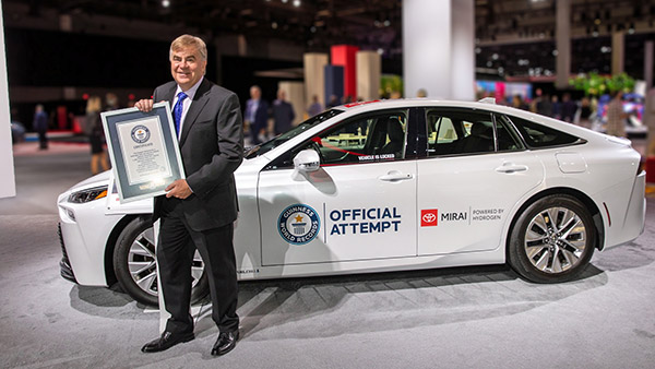 Mirai, Toyota ಕಂಪನಿಯ ಜನಪ್ರಿಯ ಕಾರು ಮಾದರಿಗಳಲ್ಲಿ ಒಂದಾಗಿದೆ. ಈ ಕಾರು ಹೈಡ್ರೋಜನ್ ಇಂಧನ ಕೋಶದಿಂದ ನಡೆಸಲ್ಪಡುವ ವಾಹನವಾಗಿದೆ. ಈ ಕಾರು ಈಗ ಗಿನ್ನಿಸ್ ದಾಖಲೆಗೆ ಪಾತ್ರವಾಗಿದೆ. ಒಂದು ಬಾರಿ ಪೂರ್ತಿಯಾಗಿ ಹೈಡ್ರೋಜನ್ ಇಂಧನ ತುಂಬಿದ ನಂತರ ಈ ಕಾರು 1359 ಕಿ.ಮೀ ದೂರ ಚಲಿಸಿದೆ. ಹೈಡ್ರೋಜನ್ ಇಂಧನ ಕೋಶದಿಂದ ಚಾಲನೆಯಾಗುವ ಕಾರು ಫುಲ್ ಟ್ಯಾಂಕ್ ಹೈಡ್ರೋಜನ್ ಹೊಂದಿ ಇಷ್ಟು ದೂರ ಚಲಿಸಿದ್ದು ಇದೇ ಮೊದಲು.