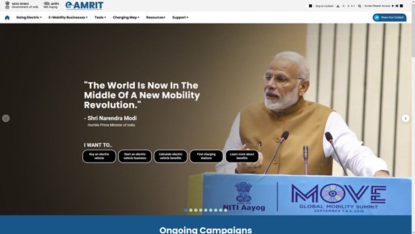 ಸ್ಕಾಟ್ಲೆಂಡ್ನ ಗ್ಲಾಸ್ಗೋದಲ್ಲಿ ನಡೆಯುತ್ತಿರುವ ವಿಶ್ವಸಂಸ್ಥೆಯ ಹವಾಮಾನ ಬದಲಾವಣೆ ಸಮ್ಮೇಳನದಲ್ಲಿ ಕೇಂದ್ರ ಸರ್ಕಾರವು ಎಲೆಕ್ಟ್ರಿಕ್ ವಾಹನಗಳಿಗಾಗಿ ಇ-ಅಮೃತ್ ಎಂಬ ವೆಬ್ ಪೋರ್ಟಲ್ ಅನ್ನು ಆರಂಭಿಸಿದೆ. ಇ-ಅಮೃತ್ ವೆಬ್ಸೈಟ್ ಎಲೆಕ್ಟ್ರಿಕ್ ವಾಹನಗಳ ಖರೀದಿ, ಹೂಡಿಕೆ ಅವಕಾಶ, ನೀತಿ ಹಾಗೂ ಸಬ್ಸಿಡಿಗಳಂತಹ ಎಲೆಕ್ಟ್ರಿಕ್ ವಾಹನಗಳಿಗೆ ಸಂಬಂಧಿಸಿದ ಎಲ್ಲಾ ಮಾಹಿತಿಗಾಗಿ ಒಂದು ತಾಣವಾಗಿದೆ ಎಂದು ನೀತಿ ಆಯೋಗ ತನ್ನ ಹೇಳಿಕೆಯಲ್ಲಿ ತಿಳಿಸಿದೆ.