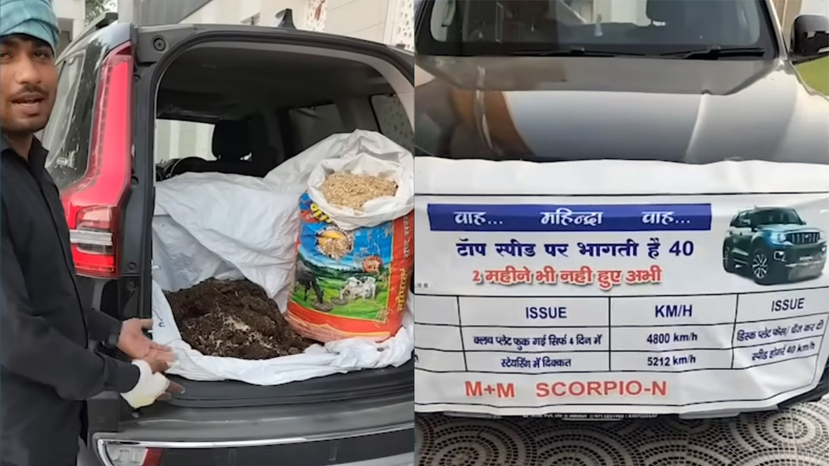 ಕಾರು ಖರೀದಿಸಿದ ಕೇವಲ 2 ತಿಂಗಳೊಳಗೆ ಅನೇಕ ಬಾರಿ ಸಮಸ್ಯೆಗಳನ್ನು ಎದುರಿಸಿದ್ದಾರೆ. ಈಗ ವಾಹನದ ಟ್ರಂಕ್ನಲ್ಲಿ ಹಸುವಿನ ಸಗಣಿ, ಆಹಾರವನ್ನು ಸಾಗಿಸಲು ಎಸ್ಯುವಿಯನ್ನು ಬಳಸುತ್ತಿದ್ದಾರೆ. ಈ ಕುರಿತ ವಿಡಿಯೋ ಸದ್ಯ ಸಾಮಾಜಿಕ ಜಾಲತಾನದಲ್ಲಿ ಸಖತ್ ವೈರಲ್ ಆಗಿದೆ. ವಾಹನದ ಮಾಲೀಕ ಸೂರಜ್ ಠಾಕೂರ್, ಸ್ಕಾರ್ಪಿಯೋ-ಎನ್ ಖರೀದಿಸಿದಾಗಿನಿಂದ ಎದುರಿಸಿದ ಎಲ್ಲಾ ಸಮಸ್ಯೆಗಳನ್ನು ವಿವರಿಸುತ್ತಾ ಬ್ಯಾನರ್ ಅನ್ನು ವಾಹನದ ಮುಂಭಾಗದಲ್ಲಿ ಅಂಟಿಸಿದ್ದಾರೆ.