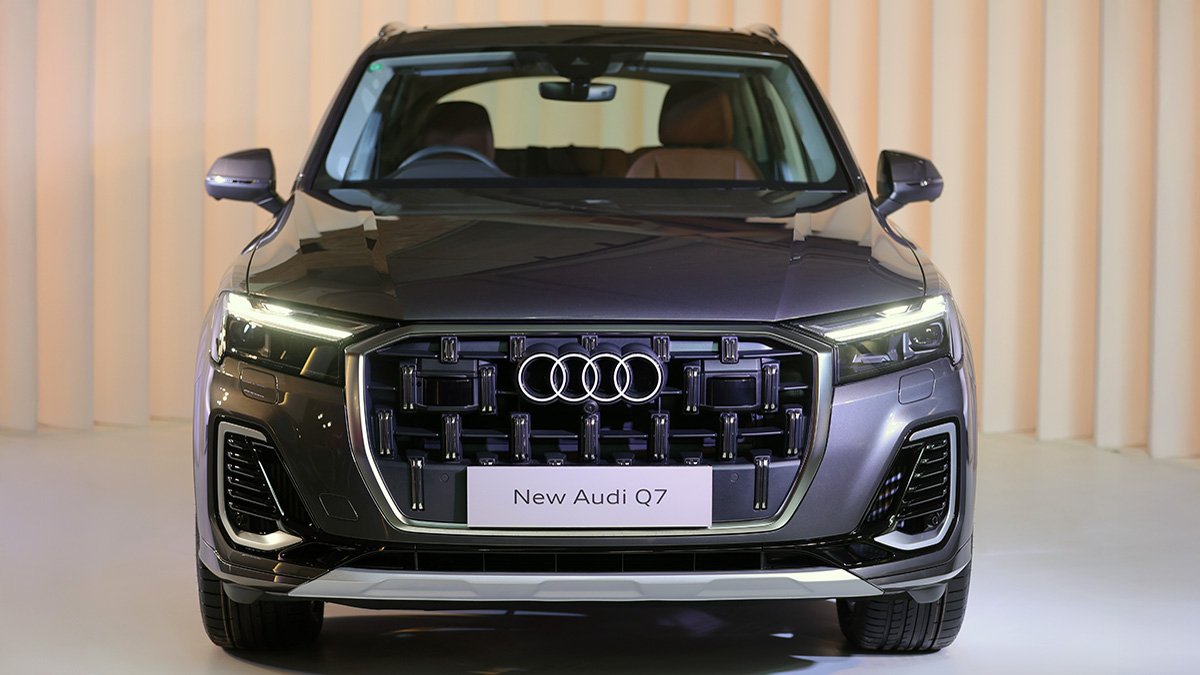 ಹೊಸ ಆಡಿ Q7 ಫೇಸ್ಲಿಫ್ಟ್ (Audi Q7 Facelift) ಎಸ್ಯುವಿಯು Q6 ಇ-ಟ್ರಾನ್ಗೆ ಹೋಲುವ OLED ಹೆಡ್ಲ್ಯಾಂಪ್ಗಳನ್ನು ಹೊಂದಿದೆ, ದಪ್ಪವಾದ ಕ್ರೋಮ್ ಸರೌಂಡ್ನೊಂದಿಗೆ ಮರುವಿನ್ಯಾಸಗೊಳಿಸಲಾದ ಗ್ರಿಲ್ ಮತ್ತು ಷಡ್ಭುಜೀಯ ಮಾದರಿಗಳನ್ನು ಹೊಂದಿದೆ. Q8 ಎಸ್ಯುವಿಯಂತೆಯೇ ಬಂಪರ್ಗಳನ್ನು ನವೀಕರಿಸಲಾಗಿದೆ. ಈ ಹೊಸ ಐಷಾರಾಮಿ ಎಸ್ಯುವಿ ಖೀರ್ ಗೋಲ್ಡ್, ವೈಟೊಮೊ ಬ್ಲೂ, ಮಿಥೋಸ್ ಬ್ಲ್ಯಾಕ್, ಸಮುರಾಯ್ ಗ್ರೇ ಮತ್ತು ಗ್ಲೇಸಿಯರ್ ವೈಟ್ ಎಂಬ ಬಣ್ಣಗಳ ಆಯ್ಕೆಗಳಲ್ಲಿ ಲಭ್ಯವಿದೆ.