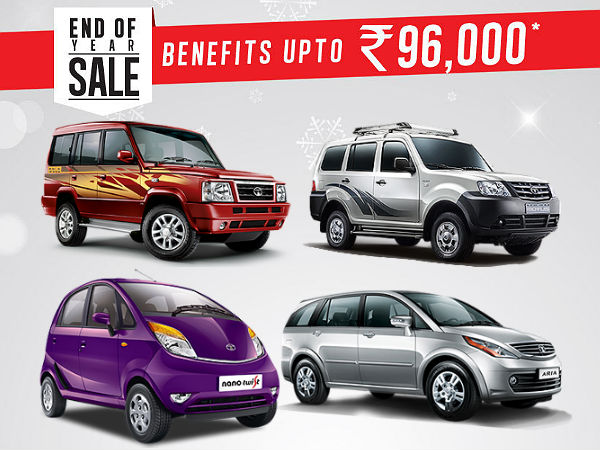 ದೇಶದ ಅತಿ ದೊಡ್ಡ ವಾಹನ ತಯಾರಿಕ ಸಂಸ್ಥೆಯಾಗಿರುವ ಟಾಟಾ ಮೋಟಾರ್ಸ್, ಮುಂಬರುವ ಕ್ರಿಸ್ಮಸ್ ಹಾಗೂ 2014 ವರ್ಷಾಂತ್ಯದ ಅವಧಿಯನ್ನು ಗಮನದಲ್ಲಿಟ್ಟುಕೊಂಡು, ತನ್ನೆಲ್ಲ ಗ್ರಾಹಕರಿಗೆ ವಿಶೇಷ ಇಯರ್ ಇಂಡ್ ಸೇಲ್ಸ್ ಆಫರ್ ಮುಂದಿಡುತ್ತಿದೆ. ಈ ಮೂಲಕ ಗ್ರಾಹಕರು ಗರಿಷ್ಠ 96,000 ರು.ಗಳ ವರೆಗೆ ಪ್ರಯೋಜನ ಗಿಟ್ಟಿಸಿಕೊಳ್ಳಬಹುದಾಗಿದೆ.