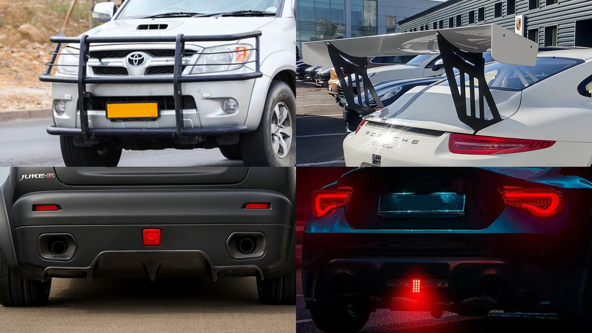 ದೊಡ್ಡ ಗಾತ್ರದ ಟೈರುಗಳು ಮತ್ತು ವೀಲ್ಗಳು: ದೊಡ್ಡ ಅಲಾಯ್ ವೀಲ್ಗಳು ಮತ್ತು ದೊಡ್ಡ ಗಾತ್ರದ ಟೈರ್ಗಳು ಭಾರತದಲ್ಲಿನ ಕಾರು ಉತ್ಸಾಹಿಗಳಲ್ಲಿ ಸಾಮಾನ್ಯ ಮಾಡಿಫೈಗಳಾಗಿದ್ದರೂ, ಅವು ಮೈಲೇಜ್, ಪರ್ಫಾಮೆನ್ಸ್ ಮತ್ತು ಕಾರಿನ ನಿರ್ವಹಣೆಯ ಮೇಲೆ ಹೆಚ್ಚಿನ ಪರಿಣಾಮ ಬೀರುತ್ತವೆ. ಇದಲ್ಲದೆ, ಪೊಲೀಸರ ಗಮನವನ್ನು ಸೆಳೆಯುತ್ತವೆ. ವಿಶೇಷವಾಗಿ ಕೇರಳದಂತಹ ರಾಜ್ಯಗಳಲ್ಲಿ ಭಾರಿ ದಂಡ ವಿಧಿಸಲಾಗುತ್ತದೆ. ಇದು ಅನುಪಯುಕ್ತ ಕಾರು ಬಿಡಿಭಾಗಗಳಲ್ಲಿ ಒಂದಾಗಿದೆ.