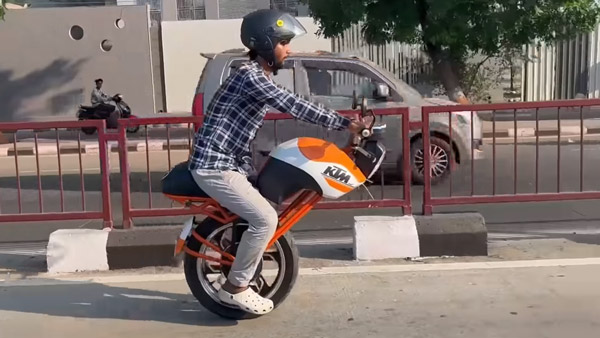 ಇದೀಗ ಯುವಕರ ತಂಡವೊಂದು ಸಿಂಗಲ್ ವೀಲ್ ಸೆಲ್ಫ್ ಬ್ಯಾಲೆನ್ಸಿಂಗ್ ಬೈಕ್ ಅನ್ನು ಅಭಿವೃದ್ಧಿಪಡಿಸಿದ್ದಾರೆ. ಇದರ ಡಿಸೈನ್ಗಾಗಿ ಯುವ ಪೀಳಿಗೆಯ ನೆಚ್ಚಿನ ಬೈಕ್ ಆಗಿರುವ ಕೆಟಿಎಂ ಅನ್ನು ಆಯ್ಕೆ ಮಾಡಿಕೊಂಡಿದ್ದು, ಸೆಲ್ಫ್ ಬ್ಯಾಲೆನ್ಸಿಂಗ್ ವಾಹನವನ್ನಾಗಿ ಸುಧಾರಿಸಲಾಗಿದೆ. ಕೆಟಿಎಂ ಬೈಕ್ ಮಾದರಿಯ ಈ ವಾಹನವು ತನ್ನನ್ನು ತಾನೇ ಸಮತೋಲನಗೊಳಿಸುತ್ತದೆ (ಸೆಲ್ಫ್ ಬ್ಯಾಲೆನ್ಸಿಂಗ್) ಮತ್ತು ಒಂದೇ ಚಕ್ರದಲ್ಲಿ ಚಲಿಸುತ್ತದೆ.