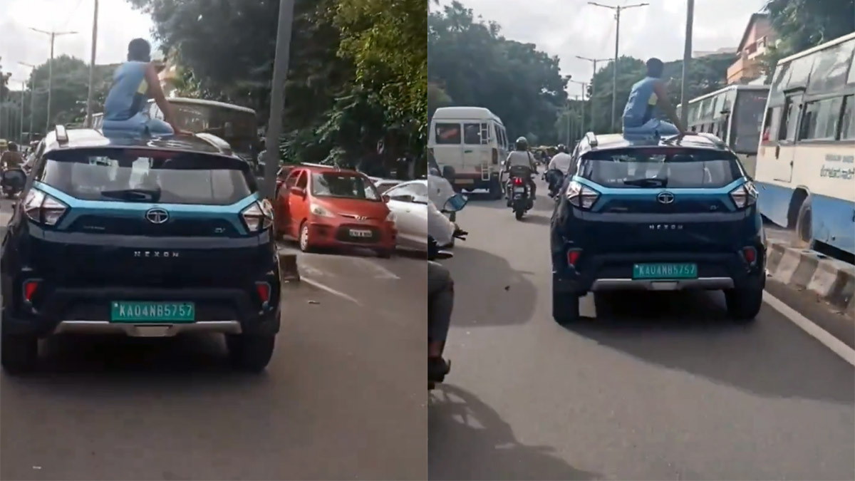 ಈ ವೀಡಿಯೊದಲ್ಲಿ, ಟಾಟಾ ನೆಕ್ಸಾನ್ ಇವಿ ಬೆಂಗಳೂರಿನ ಜನನಿಬಿಡ ರಸ್ತೆಗಳಲ್ಲಿ ಚಲಿಸುತ್ತಿರುವುದನ್ನು ನಾವು ನೋಡುತ್ತೇವೆ. ಇದು ಪ್ರಿ-ಫೇಸ್ಲಿಫ್ಟ್ ಆವೃತ್ತಿಯಾಗಿದ್ದು, ವೀಡಿಯೊದಲ್ಲಿ, ಸನ್ರೂಫ್ನಿಂದ ಎಸ್ಯುವಿಯ ಛಾವಣಿಯ ಮೇಲೆ ಮಗು ಕುಳಿತಿರುವುದನ್ನು ನಾವು ಕಾಣಬಹುದಾಗಿದೆ. ವೀಡಿಯೊವನ್ನು ಆನ್ ಲೈನ್ನಲ್ಲಿ ಶೀರ್ಷಿಕೆಯೊಂದಿಗೆ ಪೋಸ್ಟ್ ಮಾಡಲಾಗಿದೆ.