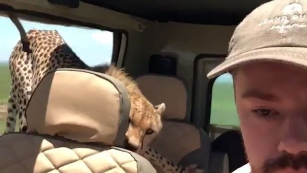 ಪ್ರವಾಸಿ ವಾಹನಕ್ಕೆ ಚಿರತೆಯೊಂದು ನುಗ್ಗಿದ ಘಟನೆ ತಾಂಜಾನಿಯಾದಲ್ಲಿ ಸಫಾರಿ ಸವಾರಿ ನಡೆಸುತ್ತಿದ್ದ ವೇಳೆ ನಡೆದಿದೆ. ಏಕಾ ಏಕಿ ಕಾರಿನೊಳಗೆ ಏರಿದ ಚಿರತೆಯನ್ನು ಕಂಡು ಗಾಬರಿಗೊಳ್ಳದ ವ್ಯಕ್ತಿ ಯಾವುದೇ ಚಲನವಲನವಿಲ್ಲದೆ ಕುಳಿತಿದ್ದ. ಈ ದೃಶ್ಯಗಳನ್ನು ಟ್ವಿಟರ್ನಲ್ಲಿ ತನ್ಸು ಯೆಗೆನ್ ಎಂಬ ಬಳಕೆದಾರ ಹಂಚಿಕೊಂಡಿದ್ದಾನೆ. ವಾಹನದ ಮುಂಭಾಗದ ಸೀಟಿನಲ್ಲಿ ಬ್ರಿಟನ್ ಹೇಯ್ಸ್ ಎಂಬ ವ್ಯಕ್ತಿ ಕುಳಿತಿರುವುದನ್ನು ವಿಡಿಯೋ ತೋರಿಸುತ್ತದೆ. ಅದೇ ಸಮಯದಲ್ಲಿ, ಚಿರತೆಯೊಂದು ವಾಹನವನ್ನು ಪ್ರವೇಶಿಸಿ ಸುತ್ತಲೂ ನೋಡಲಾರಂಭಿಸುತ್ತದೆ.