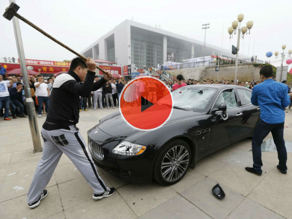'Qingdao' ಅಂತರಾಷ್ಟ್ರೀಯ ಆಟೋ ಶೋ ಮುಂಭಾಗದಲ್ಲಿ ಕಾರು ಪಾರ್ಕಿಂಗ್ ಮಾಡಿದ್ದ ಈತ ತನ್ನ ಅನುಯಾಯಿಗಳೊಂದಿಗೆ ಕಬ್ಬಿಣದ ಸಲಕರಣೆ ನೆರವಿನಿಂದ ಕಾರನ್ನು ಹಿಗ್ಗಾಮುಗ್ಗ ಹೊಡೆದುರುಳಿಸಿದ್ದಾರೆ. ಈ ದೃಶ್ಯ ನೋಡಲು ನೂರಾರು ಜನರು ಕಾರಿನ ಸುತ್ತುವರಿದಿದ್ದರು. (ವೀಡಿಯೋಗಾಗಿ ಫೋಟೊ ಗ್ಯಾಲರಿಯ ಅಂತಿಮ ಸ್ಲೈಡರ್ ಕ್ಲಿಕ್ ಮಾಡಿರಿ)