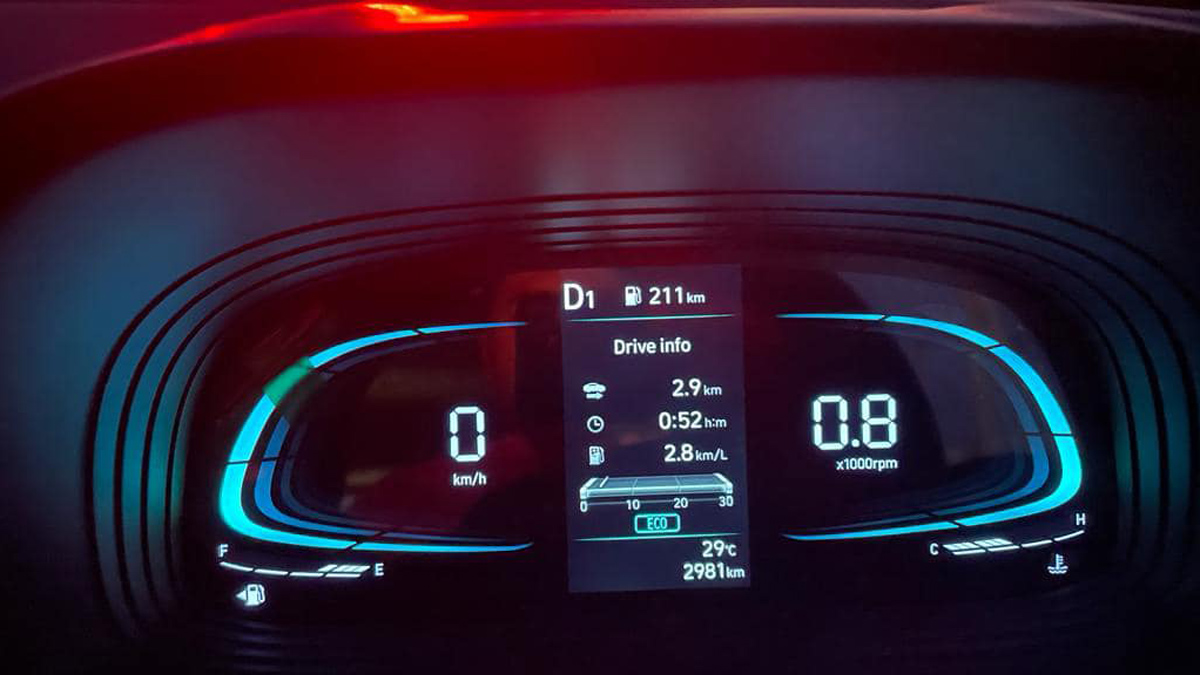 ಮಾಲೀಕ ಇನ್ಸ್ಟ್ರೂಮೆಂಟ್ ಕ್ಲಸ್ಟರ್ ಚಿತ್ರವನ್ನು ಹಂಚಿಕೊಂಡಿದ್ದಾರೆ. ಇದು 52 ನಿಮಿಷಗಳಲ್ಲಿ ಕೇವಲ 2.9 ಕಿ.ಮೀ ಪ್ರಯಾಣವನ್ನು ಮಾಡಿರುವುದನ್ನು ತೋರಿಸುತ್ತಿದೆ. ಟ್ರಿಪ್ ಇಂಧನ ದಕ್ಷತೆಯನ್ನು 2.8 kmpl ನಲ್ಲಿ ಪ್ರದರ್ಶಿಸುತ್ತಿರುವುದನ್ನು ಇಲ್ಲಿ ನಾವು ನೋಡಬಹುದು. ಮಾಲೀಕ ಇಕೋ ಮೋಡ್ನಲ್ಲಿ ವಾಹನ ಚಲಾಯಿಸುತ್ತಿದ್ದುದ್ದಾಗಿ ತಿಳಿಸಿದ್ದಾರೆ. ನಾರ್ಮಲ್ ಮತ್ತು ಸ್ಟೋರ್ಟ್ ಎಂಬ ಎರಡು ರೈಡ್ ಮೋಡ್ಗಳನ್ನು ಈ ಕಾರು ಹೊಂದಿದೆ.