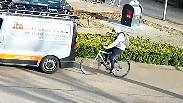 ಸೈಕಲ್ ಸವಾರಿ ವೇಳೆ ಮೊಬೈಲ್ ಬಳಸುತ್ತಾ ಮಿನಿ ವ್ಯಾನ್'ಗೆ ಗುದ್ದಿದ ಸೈಕಲ್ ಸವಾರ