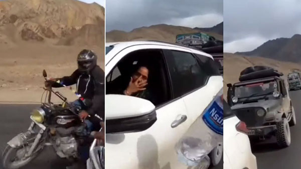ಲಡಾಖ್ಗೆ ಟೊಯೊಟಾ ಫಾರ್ಚೂನರ್ ಕಾರಿನಲ್ಲಿ ತೆರಳಿದ್ದ ಕುಟುಂಬವೊಂದು ತಾವು ಬಳಸಿದ ಪ್ಲಾಸ್ಟಿಕ್ ಬಾಟಲಿಯನ್ನು ರಸ್ತೆಯ ಮೇಲೆ ಎಸೆದಿತ್ತು. ಆಗ ಆ ರಸ್ತೆಯಲ್ಲಿ ಸಾಗುತ್ತಿದ್ದ ಬೈಕ್ ಸವಾರರೊಬ್ಬರು ಫಾರ್ಚೂನರ್ ಕಾರ್ ಅನ್ನು ಅಡ್ಡ ಗಟ್ಟಿದ್ದಾರೆ.