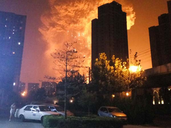ಚೀನಾ ಮಹಾ ಸ್ಪೋಟ; ನೂರಾರು ಕಾರುಗಳು ಬೆಂಕಿಗಾಹುತಿ
