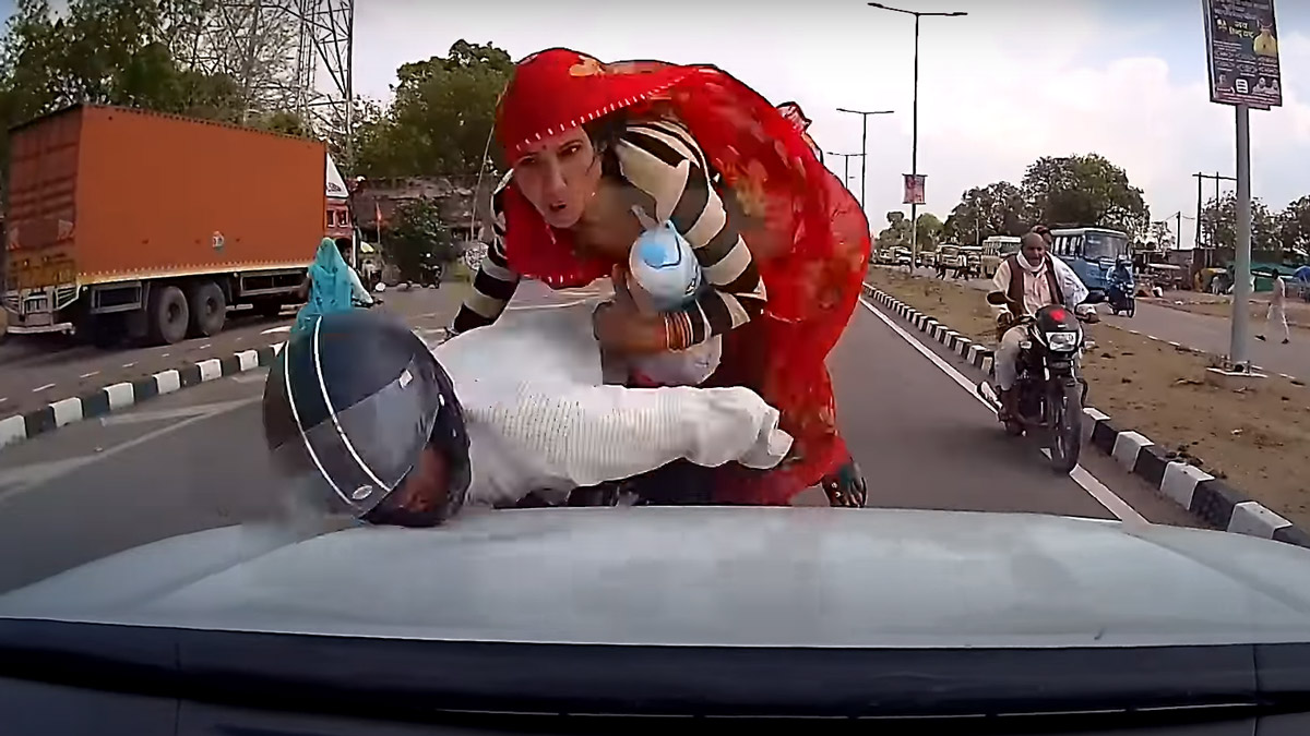 ಈ ಸಂಪೂರ್ಣ ದೃಶ್ಯಗಳು ಕಾರಿನ ಡ್ಯಾಶ್ಬೋರ್ಡ್ ಕ್ಯಾಮೆರಾದಲ್ಲಿ ಸೆರೆಯಾಗಿದೆ. ವೀಡಿಯೊದಲ್ಲಿ, ವಾಹನವು ಹೆದ್ದಾರಿಯಲ್ಲಿ ಜಂಕ್ಷನ್ ಅನ್ನು ಸಮೀಪಿಸುತ್ತಿರುವುದನ್ನು ನಾವು ನೋಡಬಹುದು. ಎರಡು ಬೈಕ್ಗಳು ಹೆದ್ದಾರಿಯ ಬಲ-ತುದಿಯ ಲೇನ್ನಲ್ಲಿ ವಾಹನವನ್ನು ಸಮೀಪಿಸುತ್ತಿರುವಂತೆ ಓರ್ವ ಚಾಲಕ ಸಂಪೂರ್ಣ ಡಿವೈಡರ್ ಬದಿಗೆ ಸರಿದುಕೊಂಡರೆ ಮಹಿಳೆಯನ್ನು ಕೂರಿಸಿಕೊಂಡು ಬರುತ್ತಿದ್ದ ಇನ್ನೋರ್ವ ಚಾಲಕ ನಿಯಂತ್ರಣ ಕಳೆದುಕೊಂಡು ಕಾರಿಗೆ ವೇಗವಾಗಿ ಡಿಕ್ಕಿ ಹೊಡೆದಿದ್ದು, ಸವಾರ ಹಾಗೂ ಹಿಂದೆ ಕುಳಿತಿದ್ದ ಮಹಿಳೆ ಬಾನೆಟ್ಗೆ ಅಪ್ಪಳಿಸಿದ್ದಾರೆ.