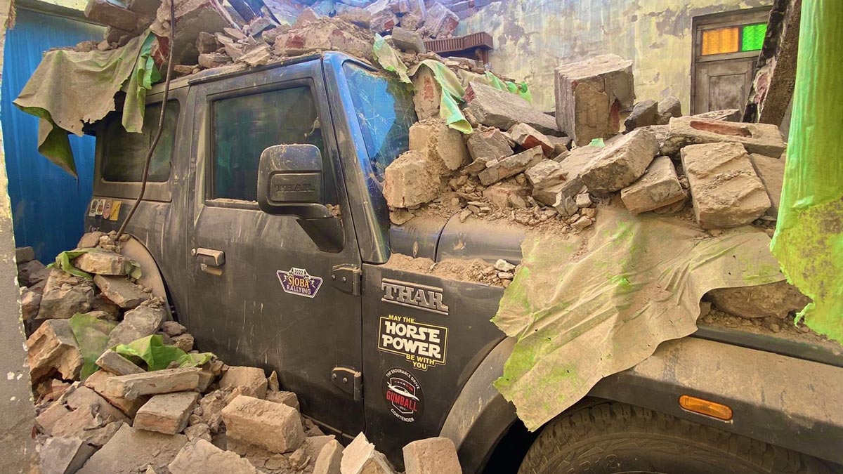 ಗ್ಯಾರೇಜ್ನ ಮೇಲ್ಛಾವಣಿ ಕುಸಿದ ನಂತರ ಅವಶೇಷಗಳಡಿಯಲ್ಲಿ ಥಾರ್ ನಿಂತಿರುವ ಚಿತ್ರ ಈ ಸೋಷಿಯಲ್ ಮೀಡಿಯಾದಲ್ಲಿ ಭಾರೀ ವೈರಲ್ ಆಗಿದೆ. ಈ ಘಟನೆಯ ಬಗ್ಗೆ ಧಿಲ್ಲೋನ್ ಅವರು ವಿವರಿಸಿರುವುದು ಹೀಗೆ, ಧಿಲ್ಲೋನ್ ನಾಲ್ವರು ಕಾರ್ಮಿಕರೊಂದಿಗೆ ಕುಸಿದ ಛಾವಣಿಯ ಅವಶೇಷಗಳನ್ನು ಸ್ವಚ್ಛಗೊಳಿಸಿದರು. ಅದರ ಮೇಲೆ ಇಟ್ಟಿಗೆ ಮತ್ತು ಕಾಂಕ್ರೀಟ್ ಭಾಗಗಳು ಬಿದ್ದಿದ್ದರೂ ಥಾರ್ ಎಸ್ಯುವಿ ಮಾತ್ರ ಹಾನಿಗೊಳಗಾಗಲಿಲ್ಲ. ಚಿತ್ರಗಳನ್ನು ನೋಡಿದಾಗ ನಿಮಗೇ ಅರ್ಥವಾಗುತ್ತದೆ.