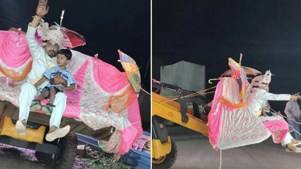 ಸಿವಿಲ್ ಇಂಜಿನಿಯರ್ ಆಗಿರುವ ವರ ಆಂಗಸ್ ಜೈಸ್ವಾಲ್ ಎಂಬಾತ ಕುದುರೆಯ ಬದಲು ಮದುವೆ ಮೆರವಣಿಗೆಗೆ ಬುಲ್ಡೋಜರ್ ಬಳಸಿದ್ದಾನೆ. ಆಂಗಸ್ ಜೈಸ್ವಾಲ್ ಬುಲ್ಡೋಜರ್ ಮುಂಭಾಗದ 'ಲೋಡಿಂಗ್ ಬಕೆಟ್' ಪ್ರದೇಶವನ್ನು ಅಲಂಕರಿಸಿ ಅದರೊಳಗೆ ಕುಳಿತು ಮೆರವಣಿಗೆಯಲ್ಲಿ ಆಗಮಿಸಿದ್ದಾನೆ. ಇದೇ ವೇಳೆ ಲೋಡಿಂಗ್ ಬಕೆಟ್ನಲ್ಲಿ ಯಾವುದೇ ಸೇಫ್ಟಿ ಇಲ್ಲದೇ ಇನ್ನೂ ಕೆಲವರು ಕುಳಿತ್ತಿದ್ದರು.