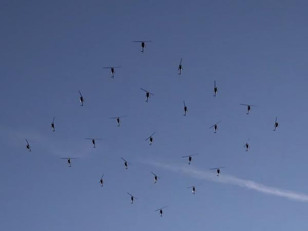 ಇದಕ್ಕೂ ಮೊದಲು 2005ರಲ್ಲಿ ಇಟಲಿಯಲ್ಲಿ 16ರಷ್ಟು ಹೆಲಿಕಾಪ್ಟರ್ ಗಳು ವಿಶೇಷ ರಚನೆ ಮಾಡಿರುವುದು ಈ ವರೆಗಿನ ದಾಖಲೆಯಾಗಿತ್ತು.