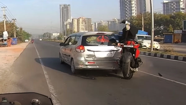ರೋಡ್ ಅಡಿಕ್ಟ್ ಎಂಬ ಯೂಟ್ಯೂಬ್ ಚಾನೆಲ್ ಈ ವೀಡಿಯೊವನ್ನು ಪೋಸ್ಟ್ ಮಾಡಿದೆ. ಈ ವೀಡಿಯೊದಲ್ಲಿ ರಸ್ತೆಯಲ್ಲಿ ಸಾಗುತ್ತಿದ್ದ ಮಾರುತಿ ಸುಜುಕಿ ಎರ್ಟಿಗಾ ಇದ್ದಕ್ಕಿದ್ದಂತೆ ರಸ್ತೆಯ ಮಧ್ಯದಲ್ಲಿ ನಿಂತಿದೆ. ಇದರಿಂದಾಗಿ ಹಿಂದಿನಿಂದ ಬಂದ ಬೈಕ್ ಸವಾರ ನಿಯಂತ್ರಣ ಕಳೆದುಕೊಂಡು ಎರ್ಟಿಗಾ ಕಾರಿಗೆ ಗುದ್ದಿದ್ದಾನೆ.