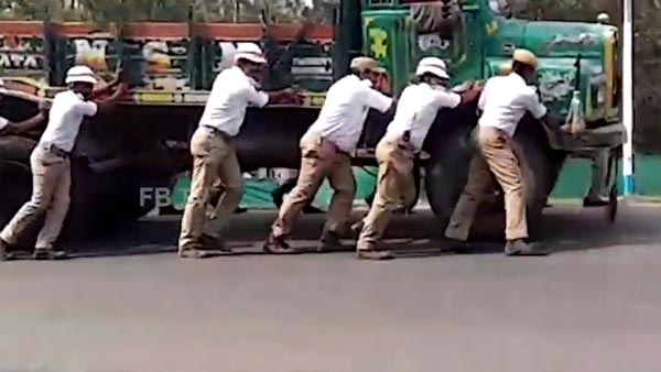 ವೀಡಿಯೋದಲ್ಲಿ ಒಂದು ಬದಿಯಿಂದ 11 ಪೊಲೀಸರು ತಳ್ಳುತ್ತಿದ್ದಾರೆ. ಟ್ರಕ್ನ ಇನ್ನೊಂದು ಬದಿ ವೀಡಿಯೋದಲ್ಲಿ ಸ್ಪಷ್ಟವಾಗಿ ಕಾಣುತ್ತಿಲ್ಲ. ಒಟ್ಟಾರೆಯಾಗಿ 20ಕ್ಕೂ ಹೆಚ್ಚು ಪೊಲೀಸರು ಟ್ರಕ್ ಅನ್ನು ತಳ್ಳುತ್ತಿದ್ದರು.