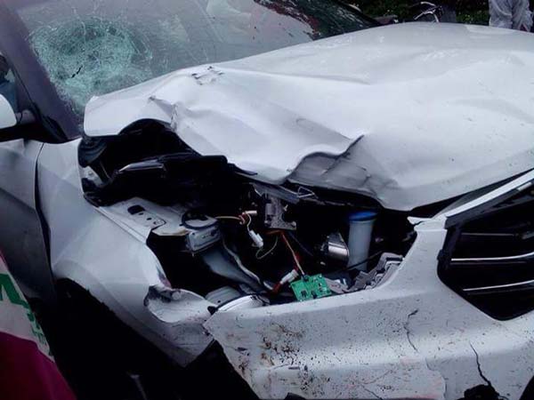 ಹ್ಯುಂಡೈ ಕ್ರೆಟಾ ಕಾರಿನ ಮುಂಭಾಗ ಸಂಪೂರ್ಣವಾಗಿ ಜಖಂ ಆಗಿದೆ. ಫ್ರಂಟ್ ಬಂಪರ್, ಬೊನೆಟ್, ವಿಂಡ್ ಶೀಲ್ಡ್ ಎಲ್ಲವೂ ಅಪಘಾತದ ರಭಸಕ್ಕೆ ನಜ್ಜುಗುಜ್ಜಾಗಿದೆ.