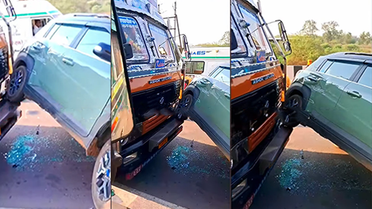 ಮಾಹಿತಿಯ ಪ್ರಕಾರ, ಹುಂಡೈ ಎಕ್ಸ್ಟರ್ (Hyundai Exter) ಕಾರಿಗೆ ಟ್ರಕ್ ಒಂದು ಹಿಂದಿನಿಂದ ಡಿಕ್ಕಿ ಹೊಡೆದಿದ್ದು, ಡಿವೈಡರ್ ಮೇಲೆ ಏರಿ ನಿಂತಿರುವುದನ್ನು ವಿಡಿಯೋದಲ್ಲಿ ಕಾಣಬಹುದು. ಆದರೇ ಇಲ್ಲಿ ಯಾವ ರೀತಿ ಡಿಕ್ಕಿಯಾಗಿದೆ ಎಂಬುದೇ ಅರ್ಥವಾಗದ ವಿಷಯವಾಗಿದೆ. ಹೇಗೋ, ವಾಹನವು ಟ್ರಕ್ನ ಬಂಪರ್ ಮೇಲೆ ಮತ್ತು ಮುಂಭಾಗದಿಂದ ಡಿವೈಡರ್ ಮೇಲೆ ಹತ್ತಿದೆ. ಸದ್ಯ ಯಾವುದೇ ಪ್ರಯಾಣಿಕರಿಗೆ ಗಂಭೀರ ಗಾಯಗಳು ಆಗಿರುವ ಬಗ್ಗೆ ವರದಿಯಾಗಿಲ್ಲ. ವಾಹನಕ್ಕೂ ಯಾವುದೇ ಹಾನಿಯಾಗಿಲ್ಲ. ದೃಶ್ಯಗಳು ಆಘಾತಕಾರಿಯಾಗಿ ಕಾಣಬಹುದಾದರೂ, ಕಾರು ಅಥವಾ ಮಾಲೀಕ, ಪ್ರಯಾಣಿಕರಿಗೆ ಯಾವುದೇ ಹಾನಿಯಾಗಿಲ್ಲ.