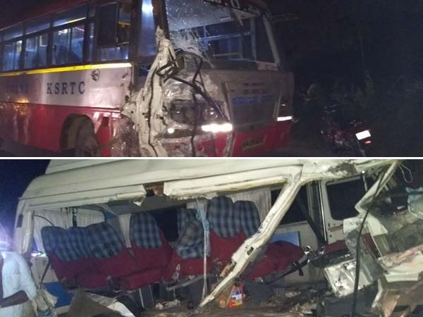 ಆಂಧ್ರಪ್ರದೇಶದ ಚಿತ್ತೂರು ಜಿಲ್ಲೆಯ ಬಂಗಾರುಪಾಳ್ಯಂನಲ್ಲಿ ಗುರುವಾರ ನಸುಕಿನ ಜಾವ ಈ ಘಟನೆ ನಡೆದಿದ್ದು, ಬೆಂಗಳೂರಿನಿಂದ ತಿರುಪತಿಗೆ ತೆರಳುತ್ತಿದ್ದ ಸಾರಿಗೆ ಬಸ್ಗೆ ತಿರುಪತಿಯಿಂದ ಬರುತ್ತಿದ್ದ ಟೆಂಪೋ ಟ್ರಾವೆಲರ್ ಡಿಕ್ಕಿ ಹೊಡೆದಿದೆ.