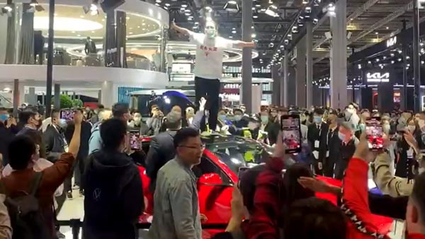 ಈಗ ಯುವತಿಯೊಬ್ಬಳು ಶಾಂಘೈ ಆಟೋ ಶೋದಲ್ಲಿ ಪ್ರದರ್ಶನಕ್ಕಿಟ್ಟಿದ್ದ ಟೆಸ್ಲಾ ಮಾಡೆಲ್ ಎಸ್ ಕಾರಿನ ಮೇಲೆ ಹತ್ತಿ ಟೆಸ್ಲಾ ಕಂಪನಿಯ ವಿರುದ್ಧ ಘೋಷಣೆ ಕೂಗುತ್ತಾ ಪ್ರತಿಭಟನೆ ನಡೆಸಿದ್ದಾಳೆ.