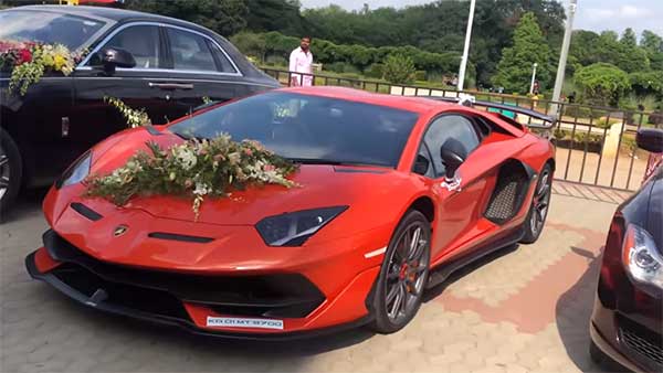 ಎಲ್ಲಾ ಕಾರುಗಳನ್ನು ಸಾಲಾಗಿ ನಿಲ್ಲಿಸಿ ಹೂವುಗಳಿಂದ ಅಲಂಕರಿಸಲಾಗಿತ್ತು. ಲ್ಯಾಂಬೊರ್ಗಿನಿ ಅವೆಂಟಡೊರ್ ಎಸ್ವಿಜೆ ಕಾರು ಭಾರತದಲ್ಲಿ ಮಾತ್ರವಲ್ಲದೇ ಇಡೀ ಪ್ರಪಂಚದಲ್ಲಿಯೇ ಸೀಮಿತ ಸಂಖ್ಯೆಯ ಜನರು ಹೊಂದಿರುವ ಕಾರ್ ಆಗಿದೆ.