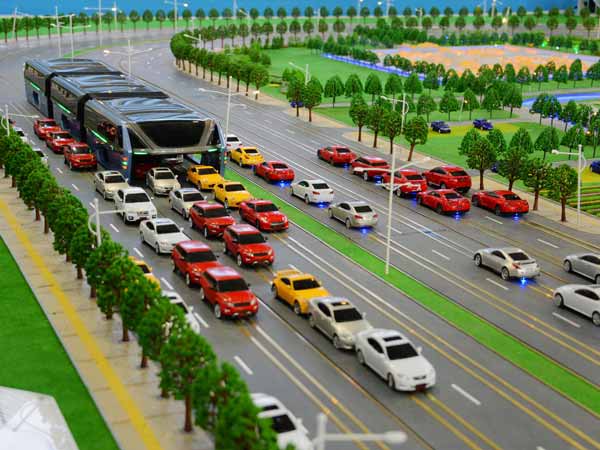 ಬೀಜಿಂಗ್ ತಳಹದಿಯ ಟ್ರಾನ್ಸಿಸ್ಟ್ ಸಂಸ್ಥೆಯು ಪ್ರದರ್ಶಿಸಿರುವ ಕಾನ್ಸೆಪ್ಟ್ ಬಸ್, ರಸ್ತೆಯಲ್ಲಿ ನಿರ್ಮಿಸಲಾಗಿರುವ ಟ್ರ್ಯಾಕ್ ಗಳ ಮೇಲೆ ಸಂಚರಿಸಲಿದ್ದು, ಇದರ ಕೆಳಗಡೆಯಿಂದಲೇ ಕಾರುಗಳು ಸುಗಮವಾಗಿ ಸಂಚರಿಸಲಿದೆ. ಈ ವಿನೂತನ ವ್ಯವಸ್ಥೆಯಿಂದ ವಾಯು ಮಾಲಿನ್ಯ ಕಡಿಮೆ ಮಾಡುವುದರೊಂದಿಗೆ ವಾಹನ ದಟ್ಟಣೆಗೆ ಸೂಕ್ತ ಪರಿಹಾರವಾಗಲಿದೆ ಎಂದು ಸಂಸ್ಥೆ ಅಭಿಪ್ರಾಯಪಟ್ಟಿದೆ.