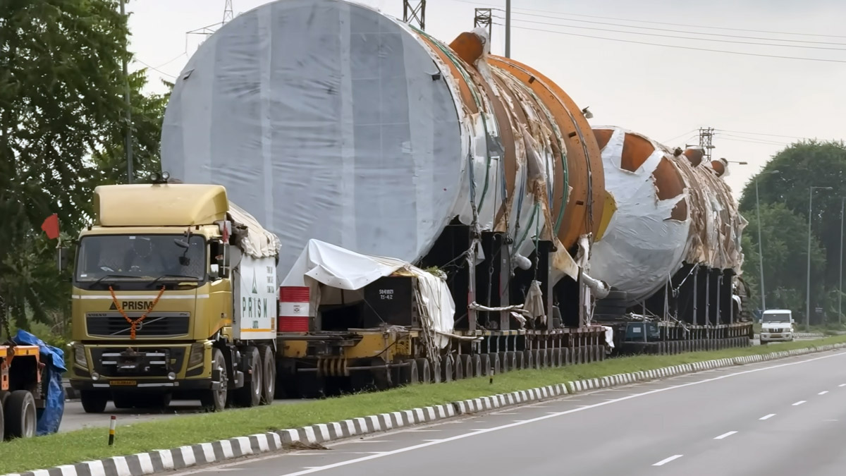 ಈ ಕೋಕ್ ಡ್ರಮ್ ತೈಲ ಸಂಸ್ಕರಣಾಗಾರಗಳಲ್ಲಿ ಬಳಸಲಾಗುವ ಪ್ರಮುಖ ಸಾಧನವಾಗಿದೆ. ಇದರ ತೂಕ ಸುಮಾರು 8 ಲಕ್ಷ ಕೆ.ಜಿಯಾಗಿದೆ. ಈ ಕಾರಣದಿಂದಾಗಿ, ಅವುಗಳನ್ನು ದೈತ್ಯ ಟ್ರಕ್ ಗಳಲ್ಲಿ ಇರಿಸಲಾಗುತ್ತದೆ ಮತ್ತು ಬಹಳ ನಿಧಾನವಾಗಿ ಸಾಗಿಸಲಾಗುತ್ತದೆ. ಈ ದೈತ್ಯ ಟ್ರಕ್ ಗುಜರಾತ್ನ ಕಾಂಡ್ಲಾ ಬಂದರಿನಿಂದ ಸುಮಾರು 1,150 ಕಿಲೋಮೀಟರ್ ದೂರದಲ್ಲಿರುವ ಹರಿಯಾಣದ ಪಾಣಿಪತ್ಗೆ ಹೋಗಿದೆ. ಈ ದೈತ್ಯ ಟ್ರಕ್ 400 ವ್ಹೀಲ್ ಗಳನ್ನು ಹೊಂದಿವೆ.