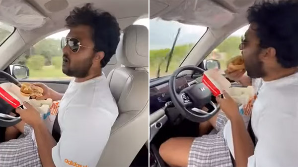 @Ri_rider ಎಂಬ ಯೂಟ್ಯೂಬ್ ಚಾನಲ್ನಲ್ಲಿ ಈ ವಿಡಿಯೋ ಅಪ್ಲೋಡಾಗಿದ್ದು, ಇದರಲ್ಲಿ ಡ್ರೈವರ್ ಸೀಟ್ನಲ್ಲಿ ಕೂತಿರುವ ವ್ಯಕ್ತಿ ಅಡಾಸ್ ಫೀಚರನ್ನು ಆನ್ ಮಾಡಿಕೊಂಡು ಬರ್ಗರ್ ತಿನ್ನುತ್ತಿರುವುದನ್ನು ಕಾಣಬಹುದು. ಇನ್ನು ನೇರವಾದ ರಸ್ತೆಯಲ್ಲಿ ಕಾರು ಚಲಿಸುತ್ತಿದ್ದು, ಕಾರಿನ ವೇಗ ಗಂಟೆಗೆ ಸುಮಾರು 80 ಕಿಮೀ ವೇಗದಲ್ಲಿರುವುದನ್ನು ಗಮನಿಸಬಹುದು. ಇನ್ನು ಕಾರು ಚಾಲಕ ಕಾರಿನ ವೇಗವನ್ನು ಕಡಿಮೆಗೊಳಿಸದೇ ಆಹಾರ ಸೇವನೆ ಮಾಡುತ್ತಿರುವುದು ಅಪಾಯದ ಮಟ್ಟವನ್ನು ಹೆಚ್ಚಿಸುತ್ತಿದೆ ಎಂದರೆ ತಪ್ಪಾಗಲಾರದು.