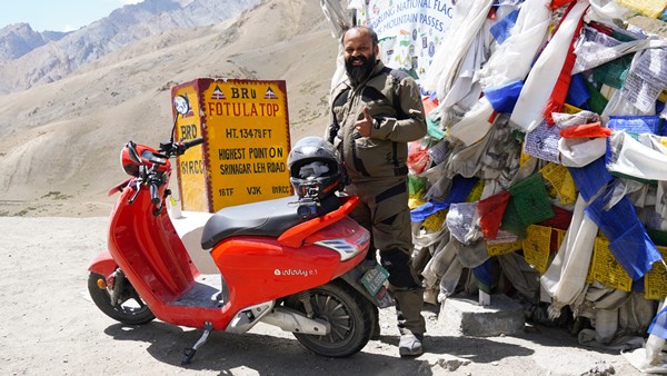 ತಮಿಳುನಾಡಿನ ಕನ್ಯಾಕುಮಾರಿಯಿಂದ ಆರಂಭವಾಗಿದ್ದ ಇವಿ ಸ್ಕೂಟರ್ ಸವಾರಿಯು 19 ದಿನಗಳಲ್ಲಿ ಲಡಾಕ್ನ ಖರ್ದುಂಗ್ ಲಾ ಪಾಸ್ ತಲುಪಿದ್ದು, ಇವಿ ಸ್ಕೂಟರ್ ಸವಾರಿಗಾಗಿ ಬೈಕರ್ ಗಿರೀಶ್ ಅವರು ಒಟ್ಟು ಆರು ಬ್ಯಾಟರಿ ಪ್ಯಾಕ್ ಮೂಲಕ ಗುರಿ ತಲುಪಿದ್ದಾರೆ.