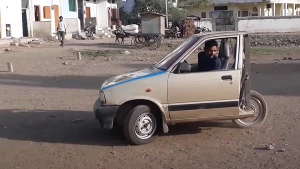 ಮೂರು ಚಕ್ರದ ಆಟೋ ರೀತಿಯಲ್ಲಿ ಮಾಡಿಫೈಗೊಂಡ ಮಾರುತಿ 800 ಕಾರು
