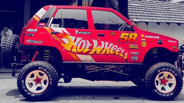 ಈ ಕಾರಿನಲ್ಲಿ ಹೊಸದಾಗಿ ಸಿಂಗಲ್ ಟೋನ್ ಬಣ್ಣವನ್ನು ನೀಡಲಾಗಿದ್ದು, ಸಾಕಷ್ಟು ಸ್ಟಿಕ್ಕರ್ಗಳನ್ನು ಅಳವಡಿಸಲಾಗಿದೆ. ಮಾಡಿಫಿಕೇಶನ್ ಮೂಲಕ ಈ ಮಾರುತಿ 800 ಕಾರನ್ನು 4x4 ಮಾನ್'ಸ್ಟರ್ ರೀತಿಯಲ್ಲಿ ಬದಲಿಸಲಾಗಿದೆ.