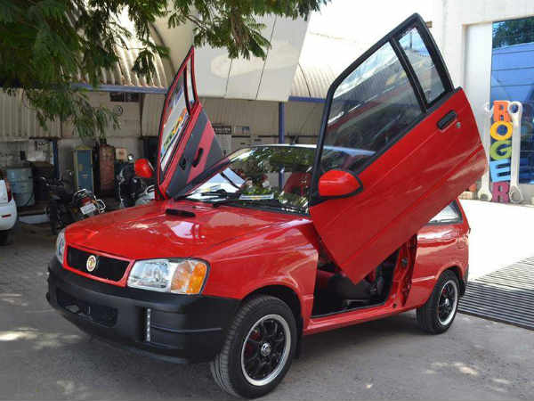 ಇಲ್ಲೂ ಮಾರುತಿ 800 ಮಾಲಿಕ ತಮ್ಮ ಕಾರಿನಲ್ಲಿರುವ ನಾಲ್ಕು ಡೋರ್ ಗಳ ಬದಲಿಯಾಗಿ ದೊಡ್ಡದಾದ ಎರಡು ಸೀಸರ್ ಡೋರ್ ಗಳನ್ನು ಲಗತ್ತಿಸಿದ್ದಾರೆ.