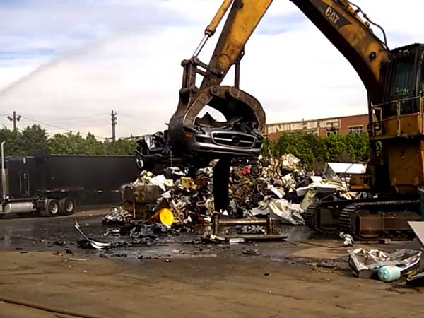 ಮೊದಲ ನೋಟದಲ್ಲಿ ಸಂಪೂರ್ಣ ಜಖಂಗೊಂಡಿರುವ ಬೆಂಝ್ ಕಾರನ್ನು ಕಸದ ಬುಟ್ಟಿಗೆ ವಿಲೇವಾರಿ ಮಾಡಲಾಗುತ್ತಿದೆ.