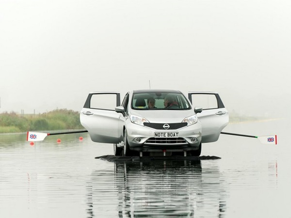 ಸಾಮಾನ್ಯಗಿಂತಲೂ ಅತಿ ವಿಶೇಷ ರೀತಿಯಲ್ಲಿ ನೋಟ್ ಬೋಟ್ ಲಾಂಚ್ ಮಾಡಿರುವ ನಿಸ್ಸಾನ್, ವಾಹನ ವಲಯದ ಗಮನ ಸೆಳೆಯುವಲ್ಲಿ ಯಶಸ್ವಿಯಾಗಿದೆ. ತೆಪ್ಪೆಯಲ್ಲಿ ಜೋಡಣೆ ಮಾಡಲಾದ ನಿಸ್ಸಾನ್ ಕಾರನ್ನು 2012 ಲಂಡನ್ ಒಲಿಂಪಿಕ್ ತಾಣದ ನದಿಯಲ್ಲಿ ಬಿಡಲಾಗಿತ್ತು.