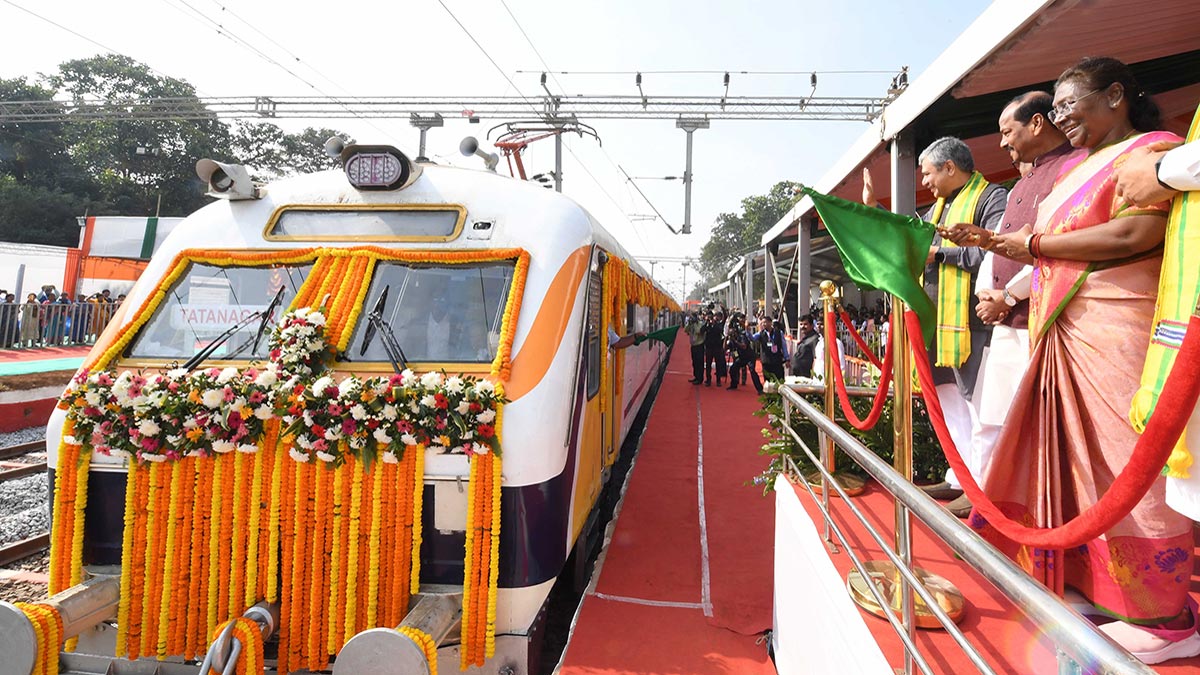 ರಾಷ್ಟ್ರಪತಿ ದ್ರೌಪದಿ ಮುರ್ಮು ಮಂಗಳವಾರ ಒಡಿಶಾದ ಬುಡಕಟ್ಟು ಪ್ರದೇಶ ಹಾಗೂ ಅವರ ತವರು ಜಿಲ್ಲೆಯ ಬದಂಪಹಾರ್ ಮತ್ತು ರೈರಂಗಪುರದಲ್ಲಿ ಎರಡು ಎಕ್ಸ್ಪ್ರೆಸ್ ರೈಲುಗಳು ಸೇರಿದಂತೆ ಮೂರು ರೈಲುಗಳಿಗೆ ಚಾಲನೆ ನೀಡಿದ್ದಾರೆ. ಇವು 91 ವರ್ಷಗಳ ಇತಿಹಾಸದಲ್ಲಿ ಈ ವಿಭಾಗದಲ್ಲಿ ಕಾರ್ಯನಿರ್ವಹಿಸಲಿರುವ ಮೊದಲ ದೂರದ ಪ್ರಯಾಣಿಕ ರೈಲುಗಳಾಗಿವೆ.