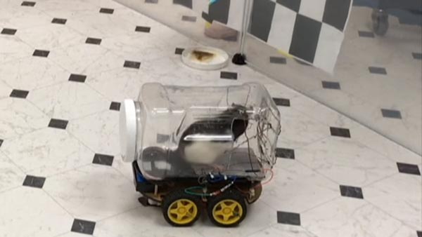 ಪ್ಲಾಸ್ಟಿಕ್ ಕಂಟೇನರ್ ಅನ್ನು ವ್ಹೀಲ್ಗಳ ಮೇಲೆ ಜೋಡಿಸಲಾಗಿದೆ. ಇದರ ಜೊತೆಗೆ 3 ತಾಮ್ರದ ಹ್ಯಾಂಡಲ್ಬಾರ್ಗಳನ್ನು ನೀಡಲಾಗಿದೆ. ಇಲಿ ಎಡಗೈ ತಾಮ್ರದ ಹ್ಯಾಂಡಲ್ಬಾರ್ ಮುಟ್ಟಿದರೆ, ಕಾರು ಎಡಕ್ಕೆ ಹೋಗುತ್ತದೆ. ಇಲಿಗಳು ಬಲಭಾಗದಲ್ಲಿರುವ ತಾಮ್ರದ ಹ್ಯಾಂಡಲ್ಬಾರ್ ಮುಟ್ಟಿದರೆ, ಕಾರು ಬಲಕ್ಕೆ ಚಲಿಸುತ್ತದೆ. ಮಧ್ಯದಲ್ಲಿರುವ ಹ್ಯಾಂಡಲ್ಬಾರ್ ಮುಟ್ಟಿದರೆ, ಕಾರು ನೇರವಾಗಿ ಹೋಗುತ್ತದೆ.