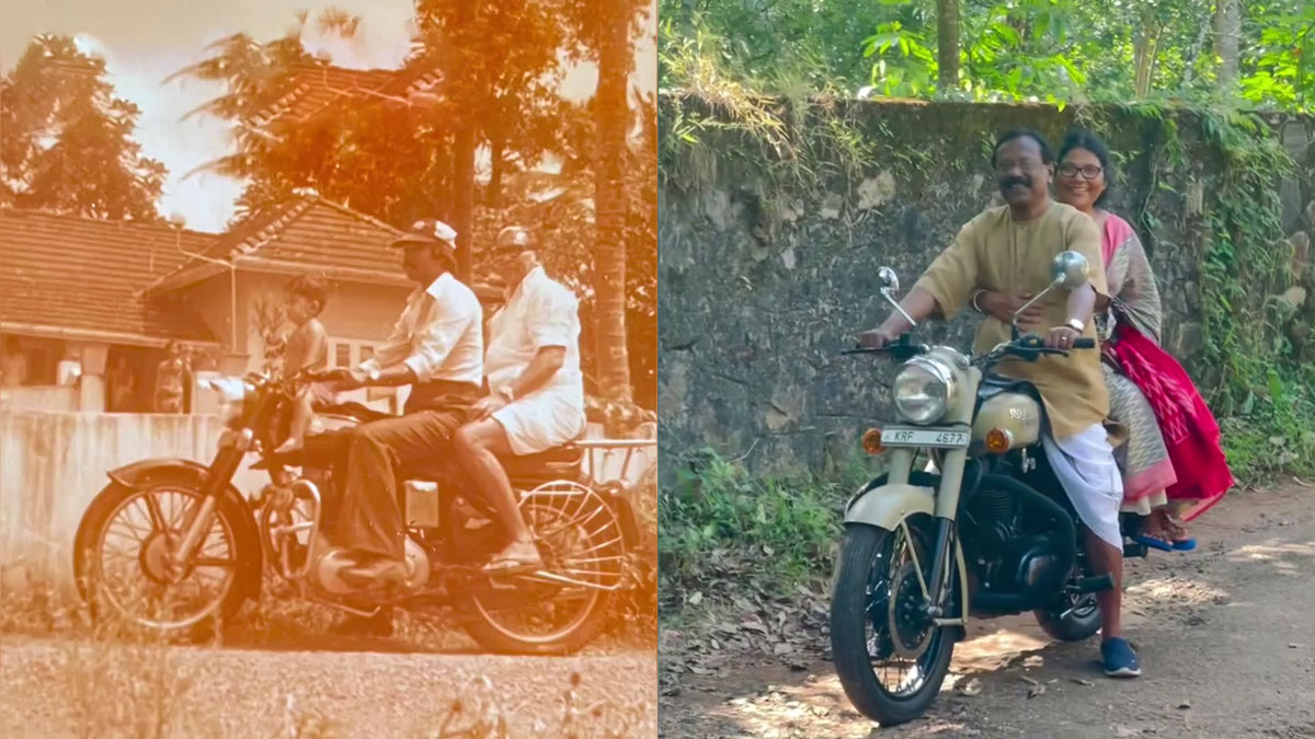 ಈ ವಿಡಿಯೋವನ್ನು ಜೋಜೊ ಕೊಟ್ಟೂರ್ ಎಂಬಾತ ಹಂಚಿಕೊಂಡಿದ್ದು, ಇವರ ತಾಯಿ 1979 ರಲ್ಲಿ ತಮ್ಮ ತಂದೆಗೆ ರಾಯಲ್ ಎನ್ಫೀಲ್ಡ್ ಬುಲೆಟ್ ಅನ್ನು ಉಡುಗೊರೆಯಾಗಿ ನೀಡಿದ್ದರು ಎಂದು ವಿಡಿಯೋದಲ್ಲಿ ಹೇಳಲಾಗಿದೆ. ದಂಪತಿ ಈ ಮೋಟಾರ್ ಸೈಕಲ್ನಲ್ಲಿ ಪ್ರಯಾಣಿಸುತ್ತಿದ್ದರು. ವಿಡಿಯೋ ಹಂಚಿಕೊಂಡಿರುವ ಜೋಜೊ ಕೂಡ ತಮ್ಮ ಸಣ್ಣ ವಯಸ್ಸಿನಲ್ಲಿ ಆಗಾಗ್ಗೆ ಈ ಮೋಟಾರ್ ಸೈಕಲ್ನ ಟ್ಯಾಂಕ್ ಮೇಲೆ ಕೂತು ಪ್ರಯಾಣಿಸುತ್ತಿದ್ದರು.
