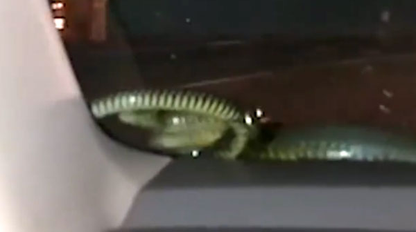 ಚಲಿಸುತ್ತಿದ್ದ ಕಾರಿನ ವಿಂಡ್ಶೀಲ್ಡ್ ಮೇಲೆ ಏಕಾಏಕಿ ಕಾಣಿಸಿಕೊಂಡ ಹಾವು