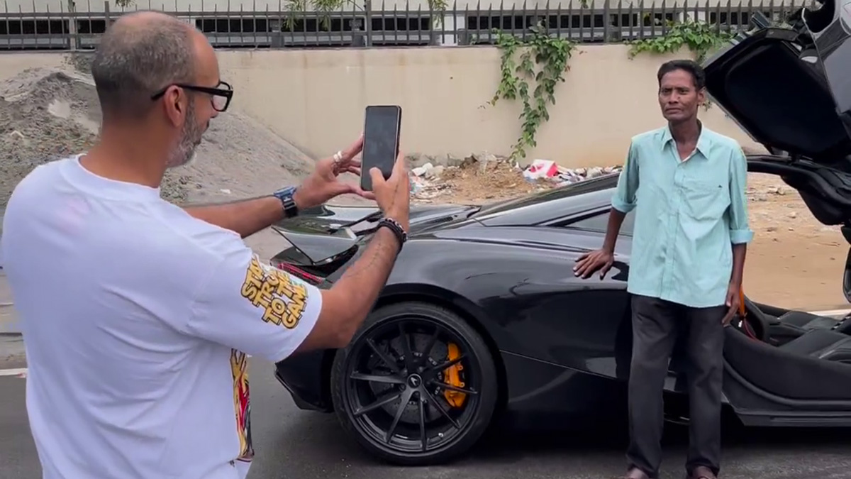 ಸ್ಪೋರ್ಟ್ಸ್ ಕಾರ್ ಮಾಲೀಕರು ತನ್ನ ಮೆಕ್ಲಾರೆನ್ನ ಚಿತ್ರವನ್ನು ಬಯಸಿದ ಸಾಮಾನ್ಯ ವ್ಯಕ್ತಿಯ ಚಿತ್ರವನ್ನು ತೆಗೆದುಕೊಂಡ ವೀಡಿಯೊ ಇಲ್ಲಿದೆ. ಈ ವಿಡಿಯೋವನ್ನು ಅಮೀರ್ ಶರ್ಮಾ ತಮ್ಮ ಇನ್ಸ್ಟಾಗ್ರಾಮ್ ಪೇಜ್ ನಲ್ಲಿ ಹಂಚಿಕೊಂಡಿದ್ದಾರೆ. ಮೆಕ್ಲಾರೆನ್ ಮಾಲೀಕರು ಬಹುಶಃ ವೀಡಿಯೊವನ್ನು ರೆಕಾರ್ಡ್ ಮಾಡುತ್ತಿದ್ದಾರೆ ಅಥವಾ ಅದೇ ಚಿತ್ರವನ್ನು ತೆಗೆದುಕೊಳ್ಳುತ್ತಿದ್ದಾರೆ.
