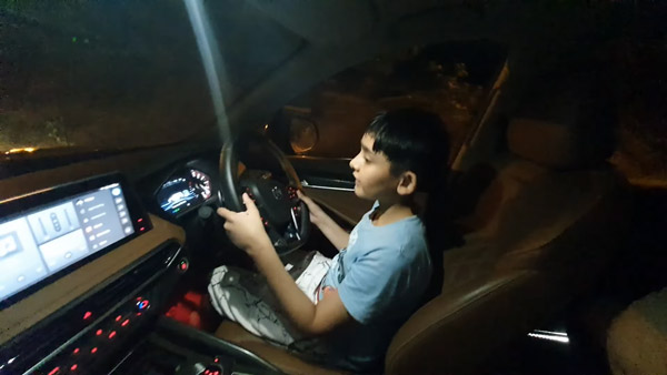 ಈ ವೇಳೆ ಡ್ಯಾಶ್ಬೋರ್ಡ್, ಸ್ಟೀರಿಂಗ್ ವೀಲ್, ಸೆಂಟರ್ ಕನ್ಸೋಲ್ನ ಒಂದು ಭಾಗವು ವಿಡಿಯೋದಲ್ಲಿ ಗೋಚರಿಸುತ್ತದೆ. ಬಾಲಕ SUV ಅನ್ನು ಹೆಚ್ಚಿನ ವೇಗದಲ್ಲಿ ಓಡಿಸುತ್ತಿಲ್ಲವಾದರೂ ಕಾನೂನು ಬಾಹಿರವಾಗಿ ಎಸ್ಯುವಿಯನ್ನು ಸಾರ್ವಜನಿಕ ರಸ್ತೆಗಳಲ್ಲಿ ಓಡಿಸಲಾಗುತ್ತಿದೆ. ಇದ್ಯಾವುದನ್ನು ಲೆಕ್ಕಸಿದ ಬಾಲಕನ ತಂದೆ ಮುಂಭಾಗದ ರಸ್ತೆಯನ್ನು ತೋರುತ್ತಾನೆ.