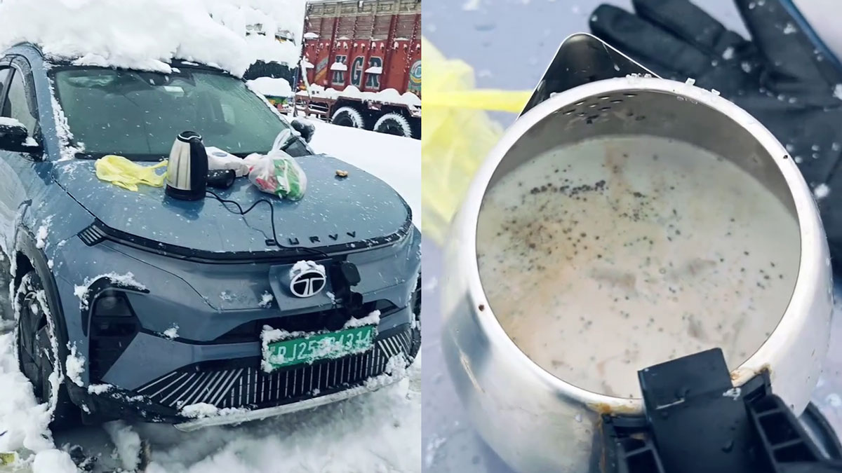 ಈ ವೇಳೆ ರಾಜಸ್ಥಾನ ಮೂಲದ ಟಾಟಾ ಕರ್ವ್ ಇವಿ ಚಾಲಕ ಟ್ರಾಫಿಕ್ ಜಾಮ್ನಲ್ಲಿ ಸಿಲುಕಿಕೊಂಡಿದ್ದು, ಹೆಚ್ಚಿನ ಭಾರತೀಯರಂತೆ ಆತನಿಗೂ ಒಂದು ಕಪ್ ಚಹಾ ಕುಡಿಬೇಕೆಂದು ಅನಿಸಿದೆ. ಹಾಗಾದರೆ, ಅವನು ಎಲ್ಲಿ ಚಹಾ ಕುಡಿಯುವುದು ಎಂದು ಯೋಜಿಸುತ್ತಾರೆ. ಈ ಸಂದರ್ಭದಲ್ಲಿ ಅವರ ತಲೆಗೆ ಒಂದು ಉಪಾಯ ಹೊಳೆಯುತ್ತದೆ. ಅವರು ಸರಳವಾಗಿ ವಿದ್ಯುತ್ ಕೆಟಲ್ ಅನ್ನು ಕರ್ವ್ ಇವಿ ಚಾರ್ಜಿಂಗ್ ಪೋರ್ಟ್ಗೆ ಸಂಪರ್ಕಿಸಿದರು ಮತ್ತು ಚಹಾವನ್ನು ತಯಾರಿಸಲು ಪ್ರಾರಂಭಿಸಿದರು.