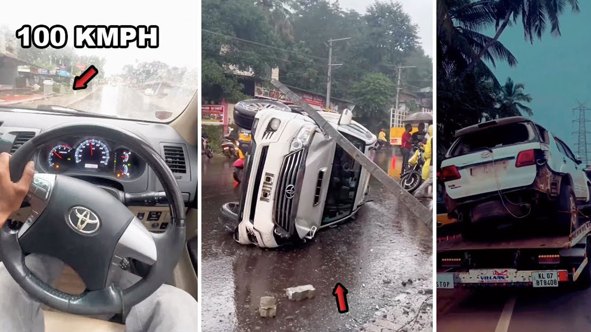 Toyota Fortuner: ವೈರಲ್ ಆಗಲು ಮಳೆಯಲ್ಲಿ 100 ಕಿ.ಮೀ.ಗೂ ಹೆಚ್ಚು ವೇಗದಲ್ಲಿ ಡ್ರೈವ್ ಮಾಡಿದ ಯುವಕ: ಕಾರು ಪಲ್ಟಿ