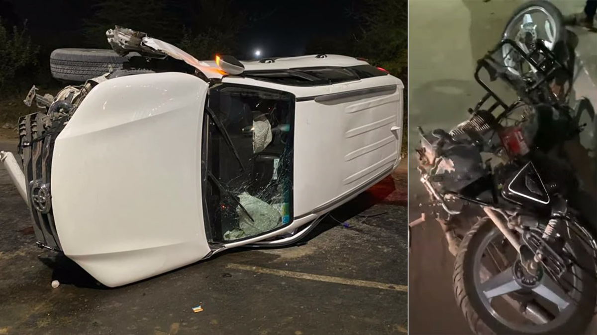 ರಾಯಲ್ ಎನ್ಫೀಲ್ಡ್ ಬುಲೆಟ್ ಬೈಕಿಗೆ ಡಿಕ್ಕಿ ಹೊಡೆದು ಮಕಾಡೆ ಮಲಗಿದ ಬಲಿಷ್ಟ ಟೊಯೊಟಾ ಫಾರ್ಚುನರ್